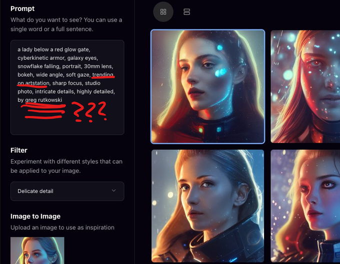 Imagine sharing this, puffing your chest, and boasting it took you almost two hours to do it. Could've just kept it to yourself, "trending on artstation" lol twitter.com/Suhail/status/…