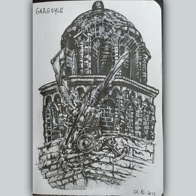 Let's try this one, but I don't have too much to offer this year, I'm too busy🥲 #inktober #inktober2022 #gargoyle #bellsgargoyle #darksouls #fromsoftware #darksoulsfanart #ink #inked #art #myart #artist #traditionalart #traditionalartist #inkonpaper #ArtistOnTwitter