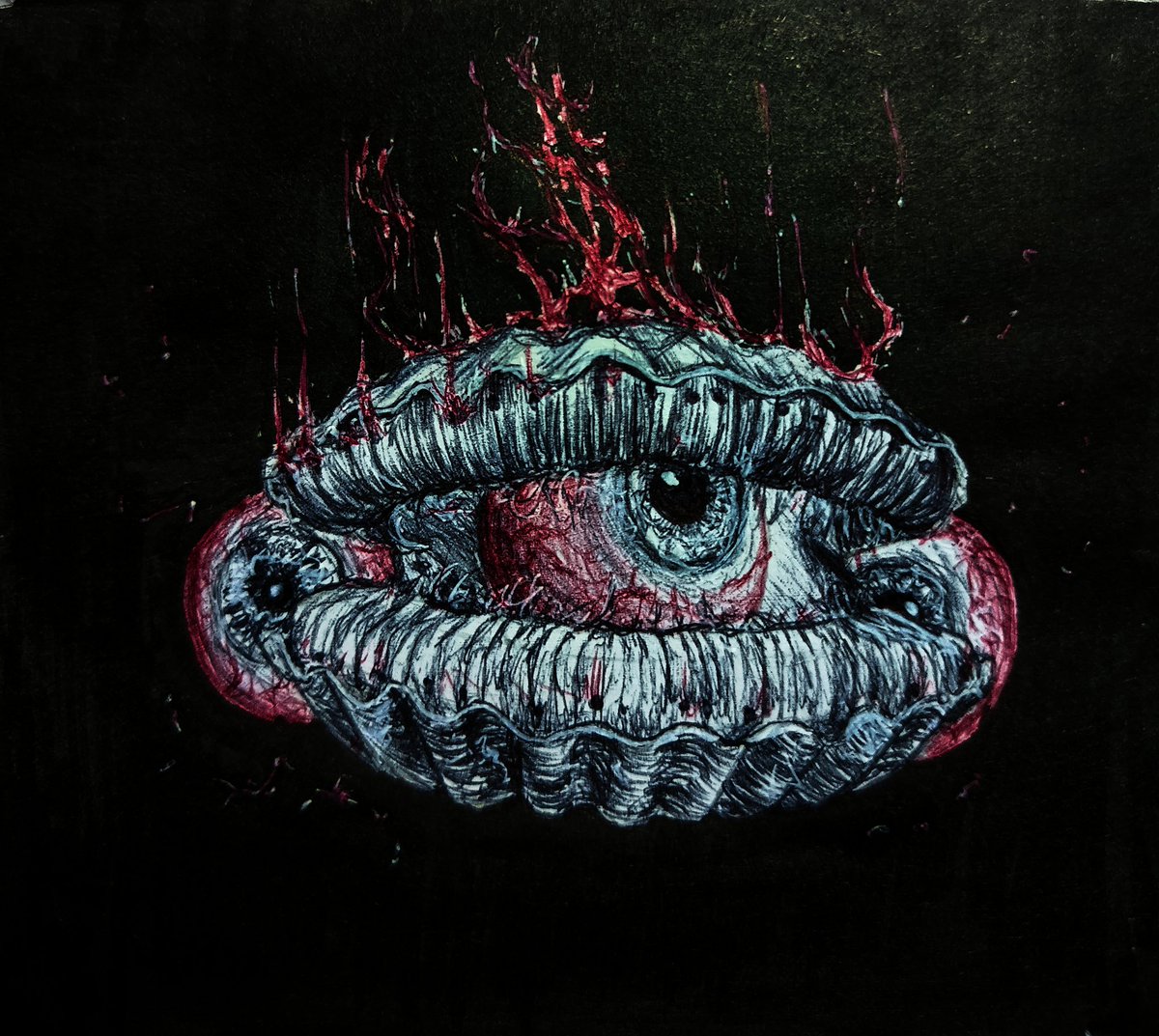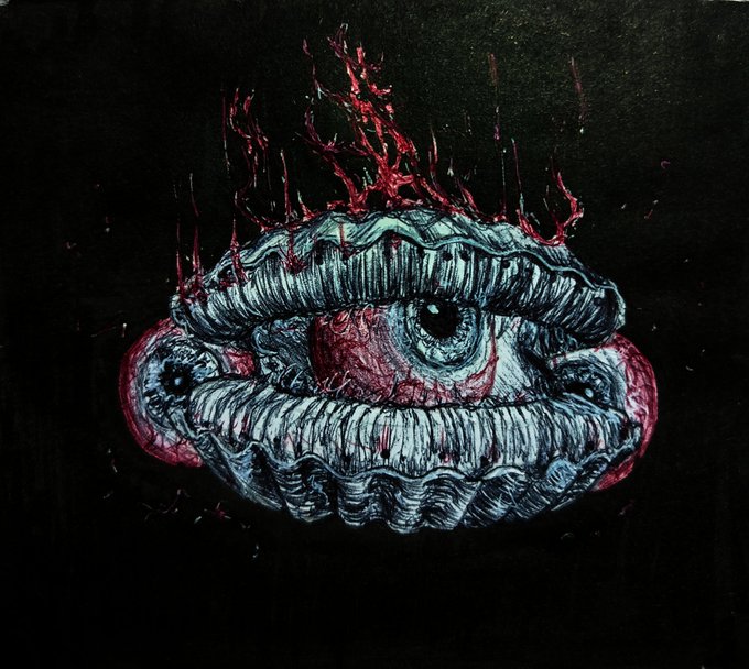 It's been a while since I last used pen🥲 but still a pleasure #inktober #inktoberitalia #inktober2022 #scallop #eyes #creepy #blood #scary #freak #art #artist #artistontwittter #traditionalart #traditionalartist #ink #pendrawing #drawing #inktoberscallop