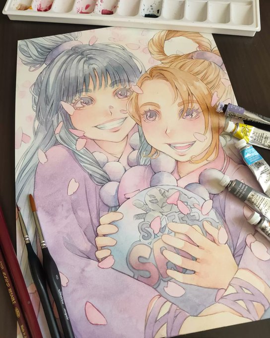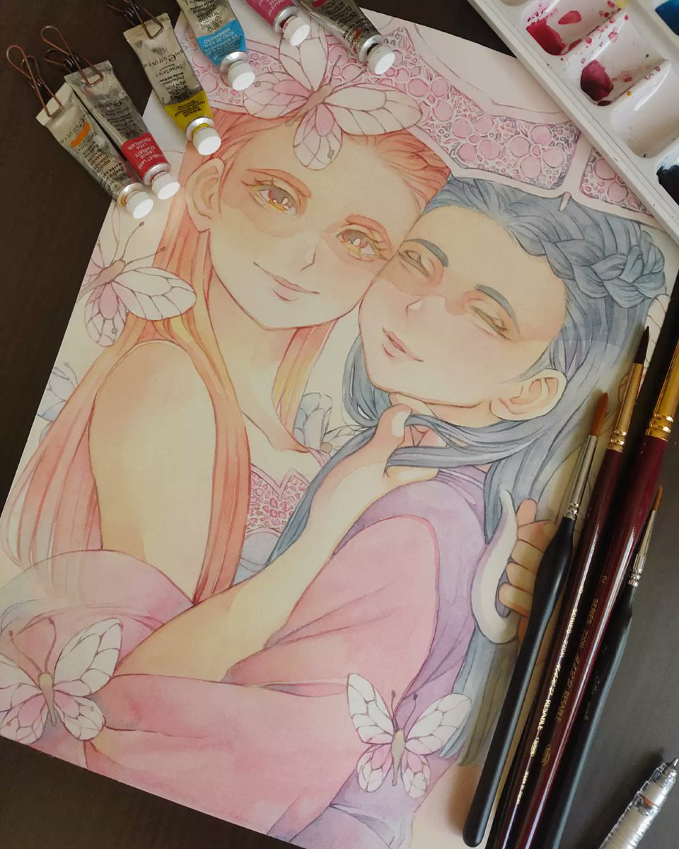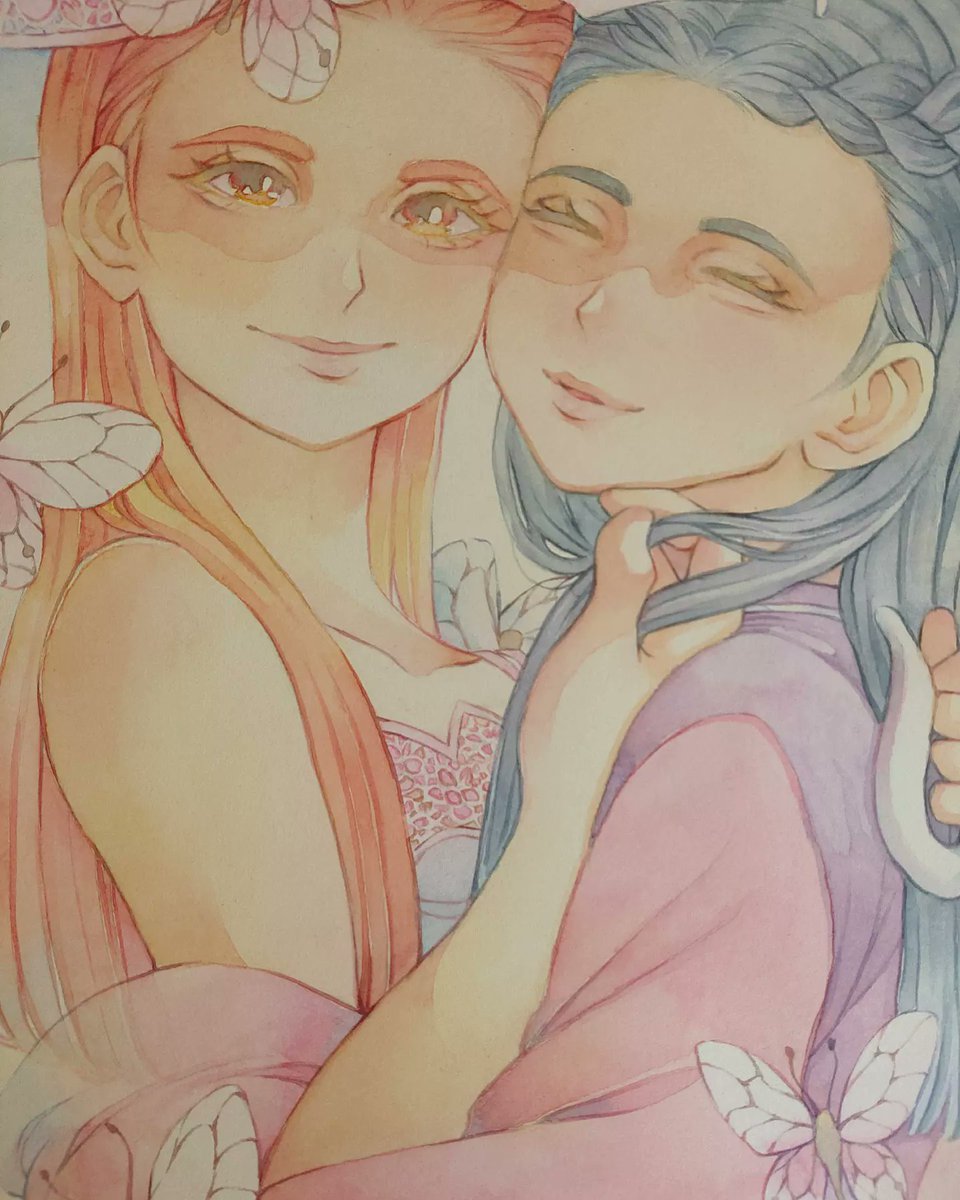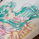 Debating if I should leave her floating in white space or not 🤔 #goldensun #黄金の太陽 #watercolour #水彩画 #artistsontwitter