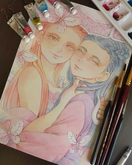 The loveliest rose can hide the cruelest thorn . #aceattorney #逆転裁判 #watercolour #水彩画 #artistsontwitter #butterfly #illustration