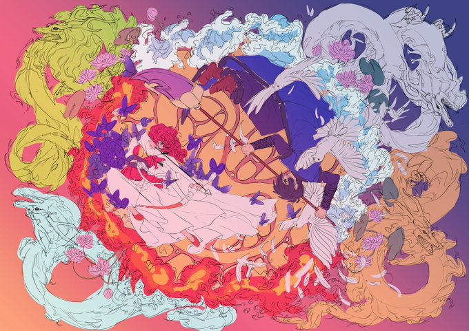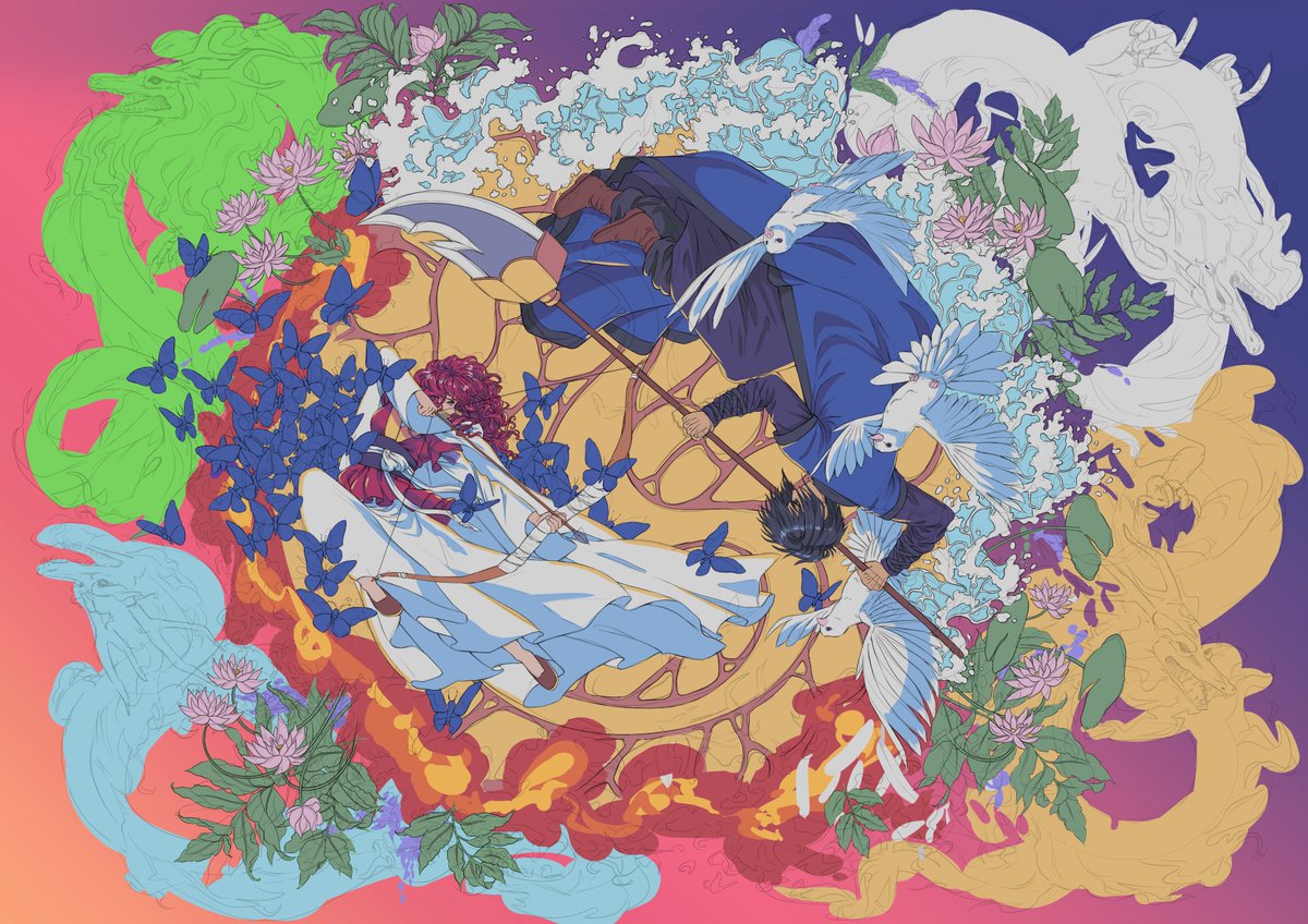 About half way done lining and blocking, next is fire and - gasp! - Dragons rawr #AkatsukiNoYona #暁のヨナ #digitalart #artistsontwitter