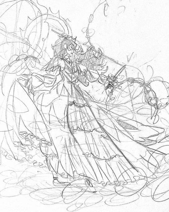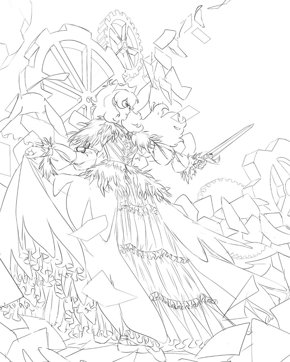 Sketch > Digitise to correct > Print and trace onto watercolour paper. I used the perspective grids in clip for the cogs and sword マジでまずかった😂 #princesstutu #プリンセスチュチュ #princess #sword #sketch #artistsontwitter