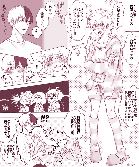 #轟爆版深夜のワンドロ一本勝負 お題『パジャマパーティー』 ⚠️女体化注意!轟爆♀です! 初参加にもかかわらず、大遅刻・1時間超・女体化失礼します🙇♀️ 付き合ってない両片想いの二人と1-Aパジャマ女子会。 長髪カッチャン♀に思いを馳せる…😌