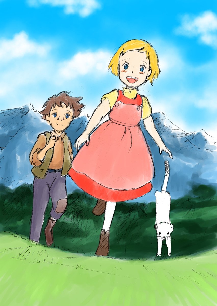 支援絵と手描きアニメで渋滞してて過去絵ですみません>< 5月も終わり、ということで「小公子セディ」より小川で魚を見るセディとコッキーです。 10年前の絵で、今ならもっと…と何度かリメイクしようとしたんですが、なぜか越えられない一枚だったりします。 #名劇と名作系アニメの木の下で