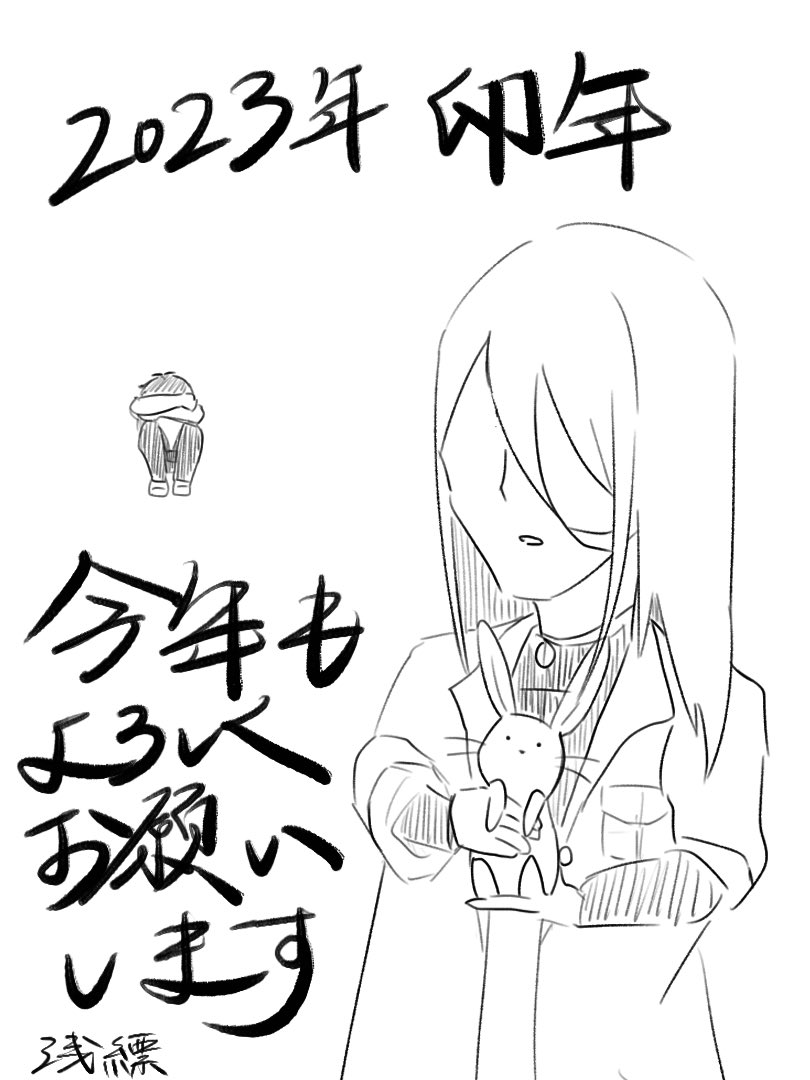 2 5 卯年なので担当の方々にはうさぎと触れ合ってもらおうと思いま……(描き初めこれ?) 23/01/01 03:01