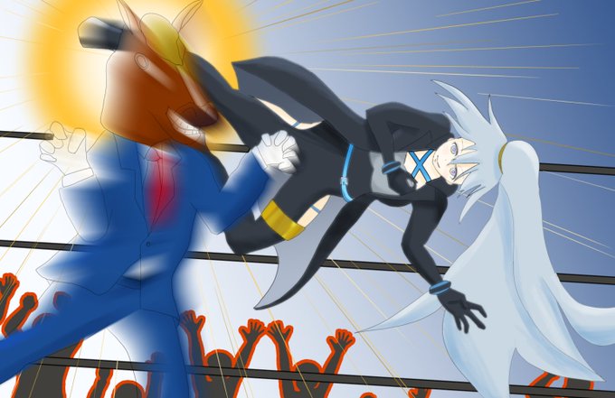 シャイニングウィザード【技】 プロレス界の誇る天才、武藤敬司の必殺技。相手の膝を踏み台にして自らの膝をたたきこむ、見た目も華やかな大技。雑誌等では文字数の節約のため閃光魔術と表記される。一瞬の閃きで勝利を呼びよせる、まさしく魔術である。 #ルールル美術館 #どっとライブプロレス辞典
