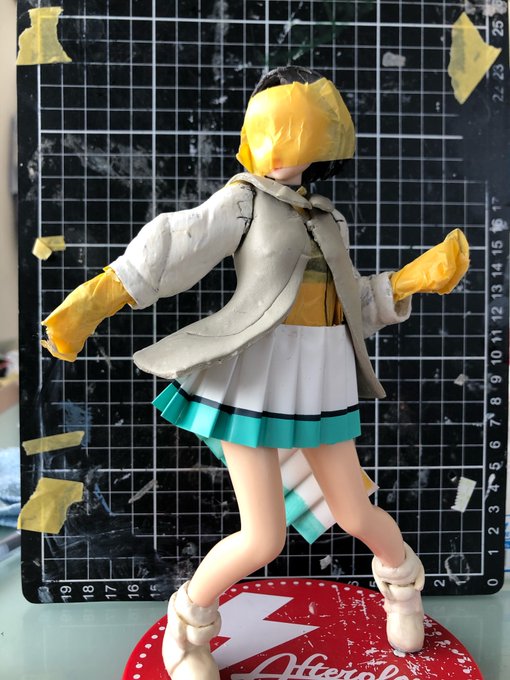 1 7 #三描く四描く まだまだ制作中の斗和キセキちゃん。 ジャンクのフィギュアを改造してます。 樹脂粘土とパテの両方、 スカートは非粘着テープ(エアコンのパイプに巻くやつを使ってます。 20/05/12 18:03