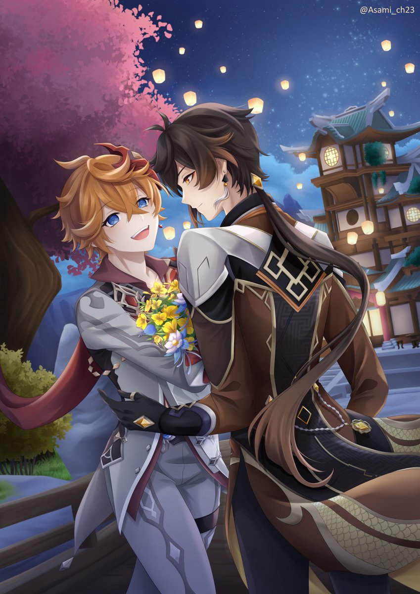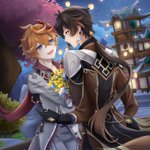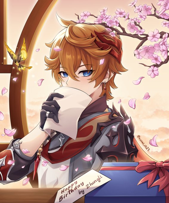 early happy birthday xiansheng! childe gifting zhongli glaze lily 🪷 also early happy new year! #鍾離生誕祭2022 #ZhongChi #鍾タル