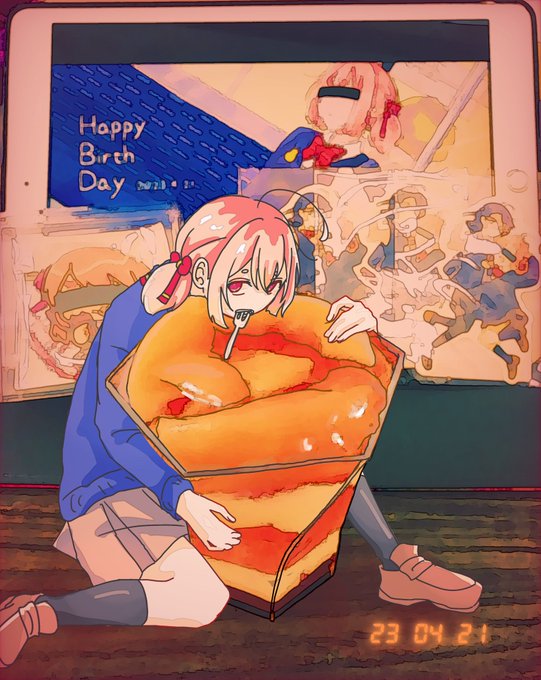 4 19 1日遅れちゃってごめんね😢どうしてもステッカーと一緒に撮りたかった😢 桃のケーキ美味しかったね〜💕 今年1年、健やかに過ごしてね!ずっと大好きだよ〜!!😎💗 #ARu子アート #ARu子生誕祭 23/04/22 17:59