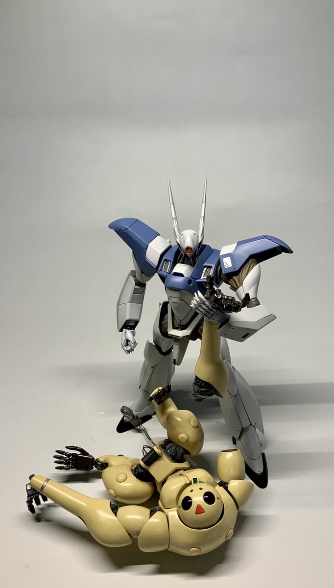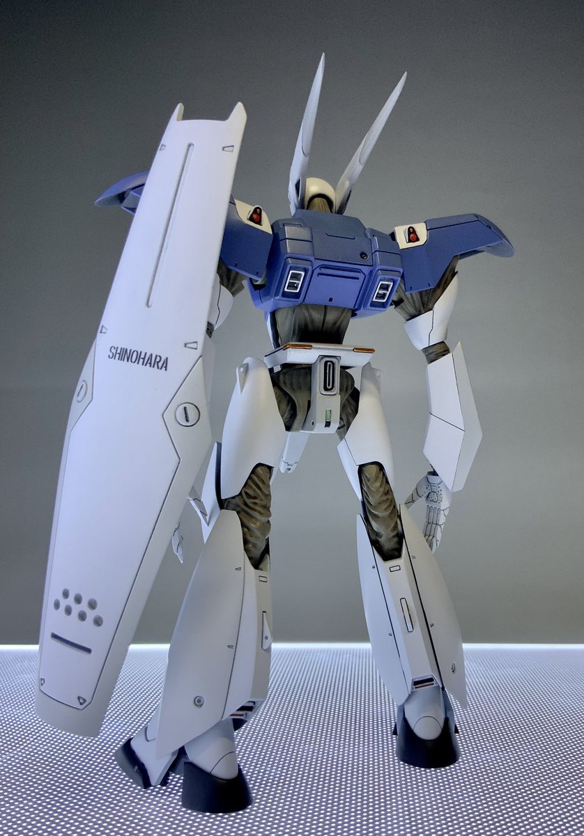 1/60 R-greyガレージキット「ヘラクレス21」完成しました。 関節部を市販ジョイントで繋げて脂取り紙で覆い、頭頂部センサーは妖怪パーツ隠しにあいましてジャンクパーツから作り出しました。 シャベルは百均のです♪ #パトレイバー模型部 #パトレイバー #国際レイバーショウ2022