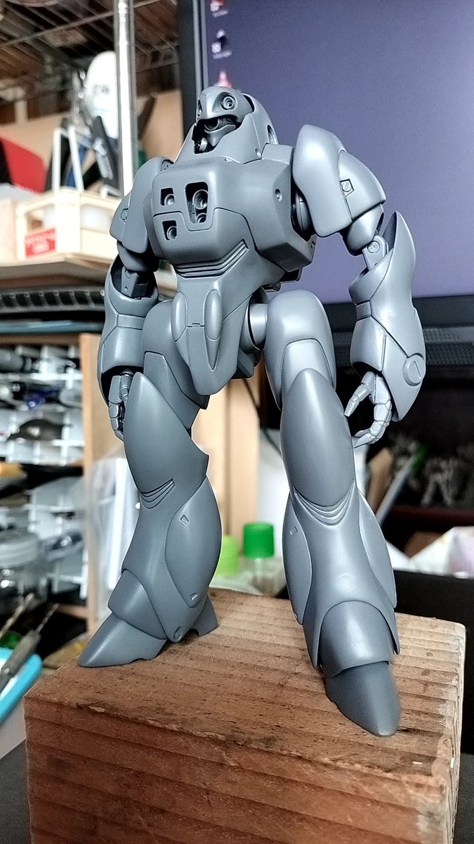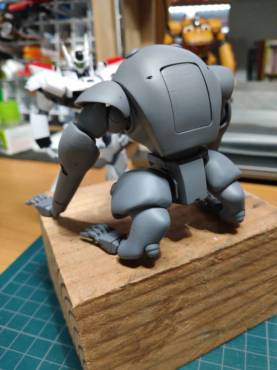 ハヌマーン捨てサフ吹いてみた 透明樹脂より見やすいのぉ、積層跡がまだまだあります… 改造したいとこ(お尻のデザインだいぶ違う)もあるけど樹脂の加工どうしたもんかな~ #パトレイバー模型部