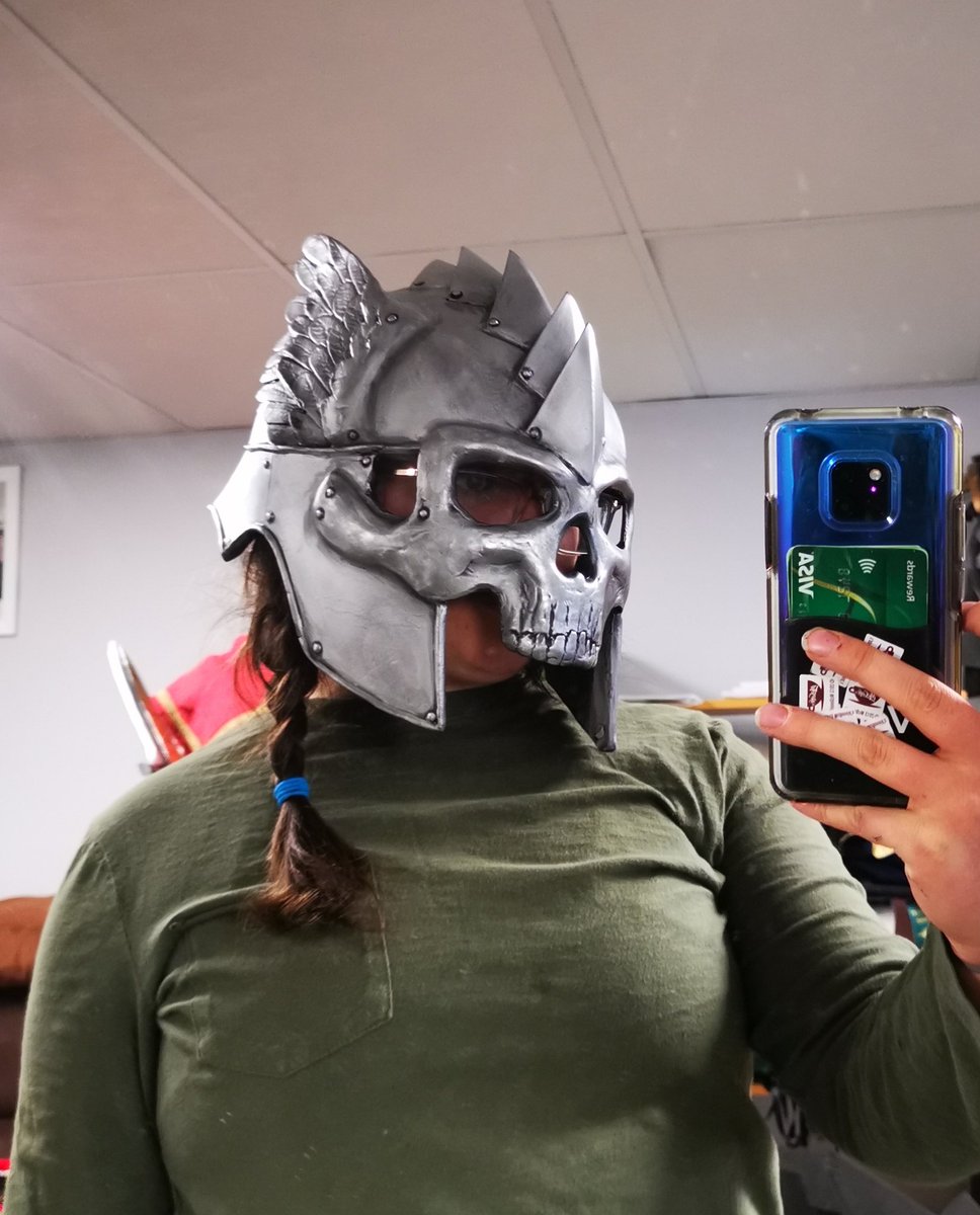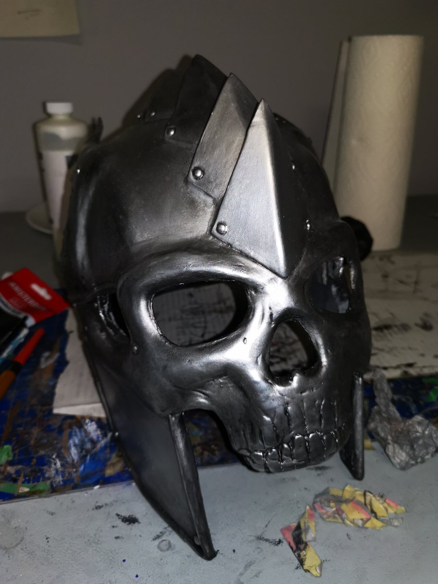 Stayed up till 2am working on finishing painting my LARP helmet cause I was super happy with it. Using rub n buff silver leaf, need to go back over and buff it more and do some shading but ❤️❤️ Foam from @ArdaWigsCanada #larp #cosplay #luminsworkshop #artistemporium