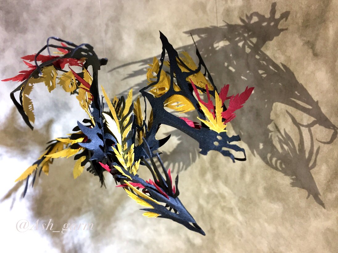 デザフェスにも置いていた、同じ形の黒い骨格と違う色の羽根をもつ2匹の飛龍です🐉