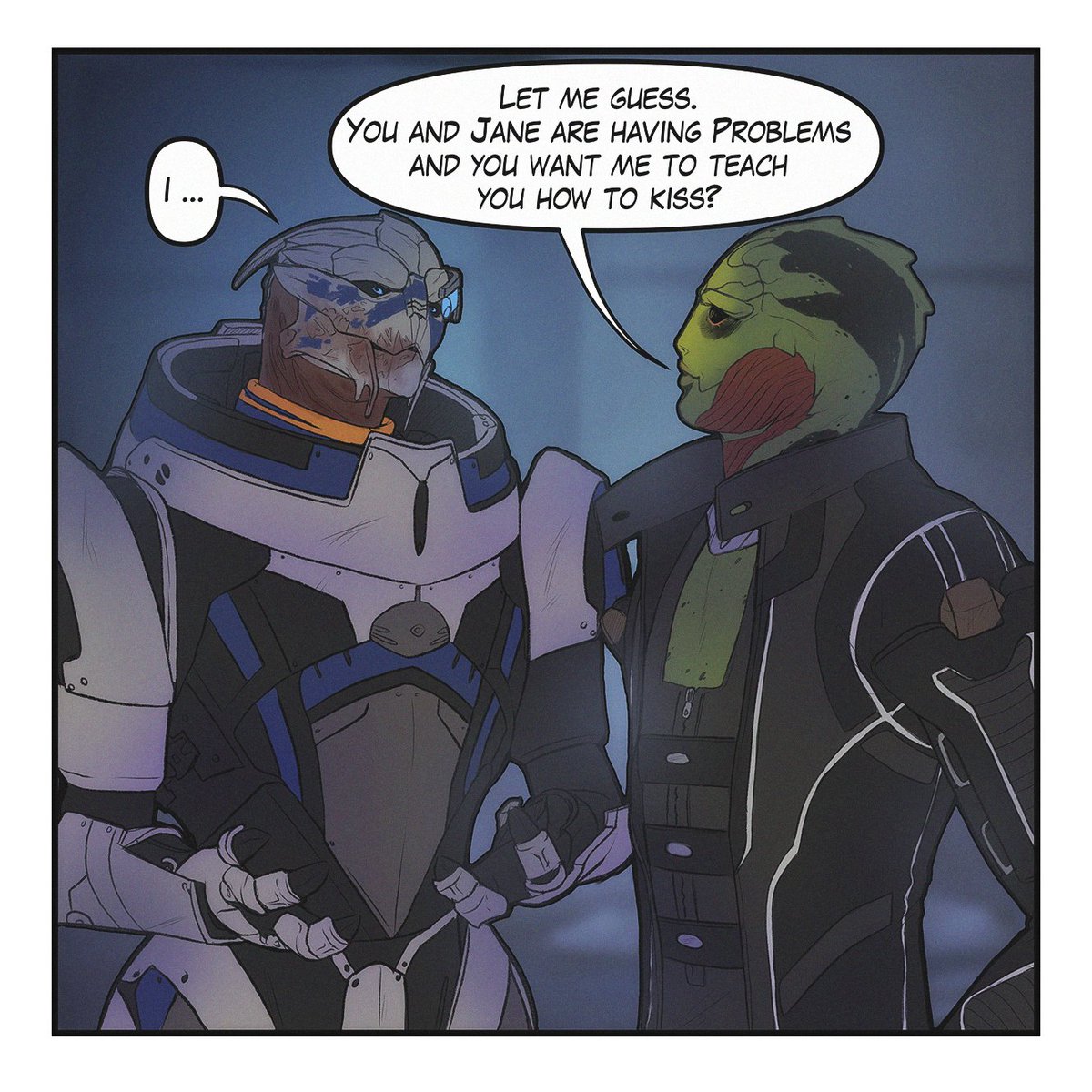 This Sundays work <3 A comic strip between Garrus and Thane for my Polyship with Jane :D But the real question is: What did Garrus want to ask? XD #Shakarios #MassEffect