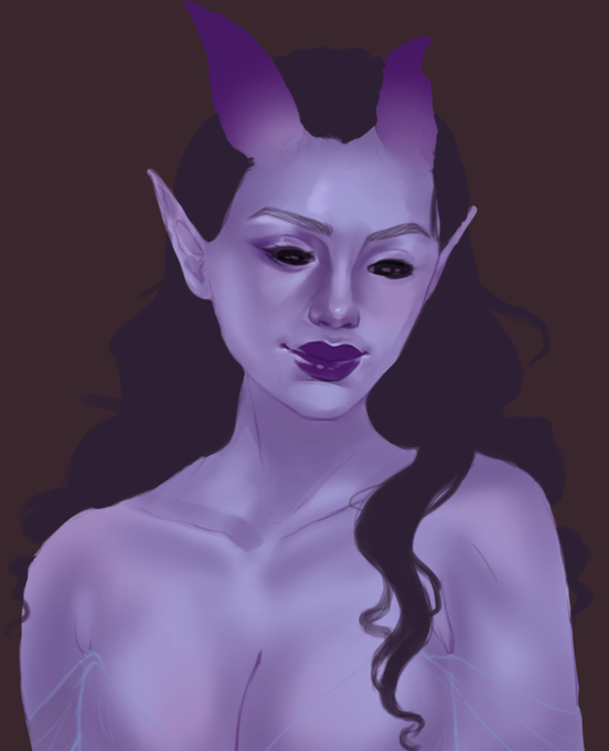 After playing hours of dbd with @fiannans and having awesome rounds, I was way too awake to sleep, so I spent a bit more time and finished this Tiefling lady <3 #dndart #dndcharacterart