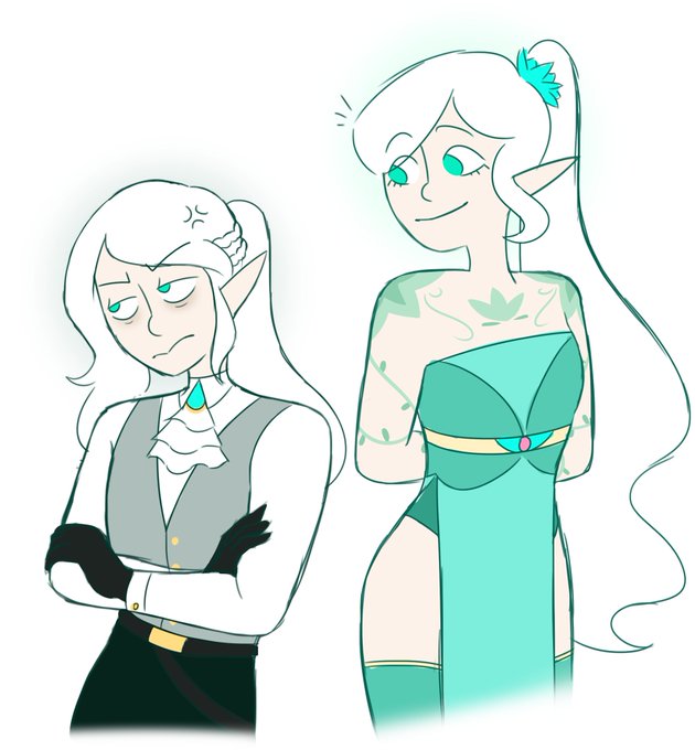 wanna be more adamant about posting my art, so here's a doodle of my long-lost sibling characters, Leon (left) and Lottie (right)! [insert BDG's sibling dance song] #dndart #elf #DnDcharacter