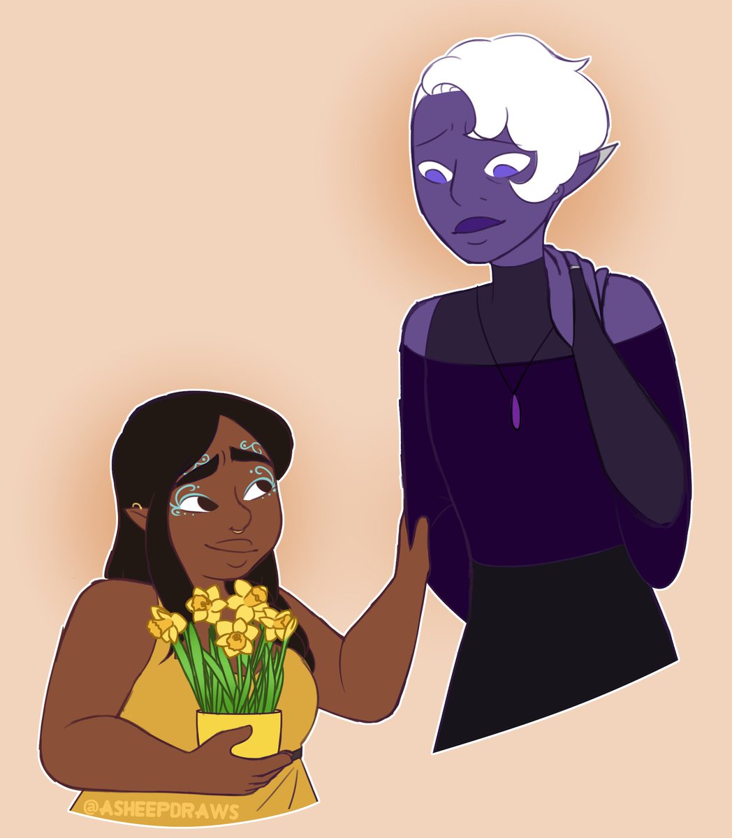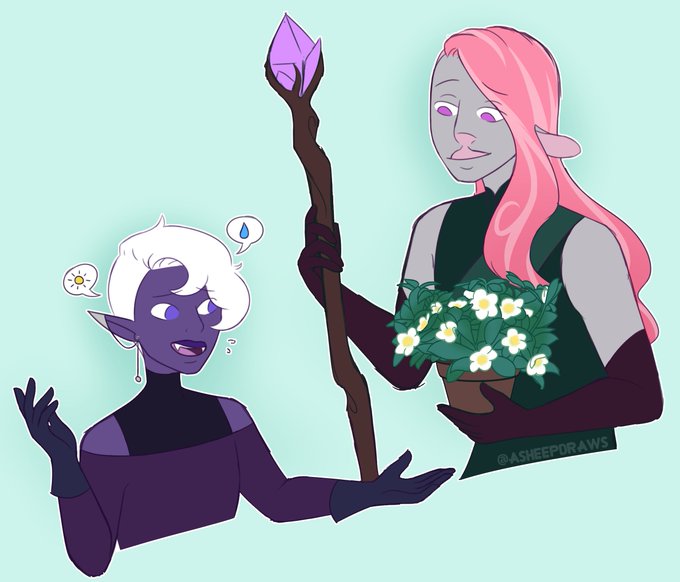 its gonna be a bit before i finish the rest of the set but in honor of getting animated essek today, have some jessek besties early✨ (ft. flowers essek grew for Jester) #CriticalRoleFanart #EssekThelyss #JesterLavorre