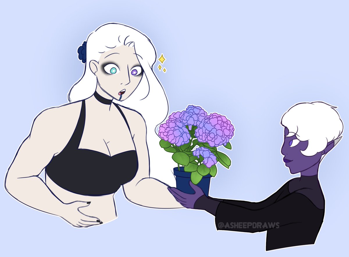 #criticalrolefanart series i made of Essek growing flowers for friends! Cad- Lenten Rose(serenity,tranquility+peace) Beau- Morning glory(strength;ability to grow through adversity) Yasha- Hydrangea(gratitude,grace+beauty) Veth- Daffodil(rebirth+hope;new life+resilience) (1/2)