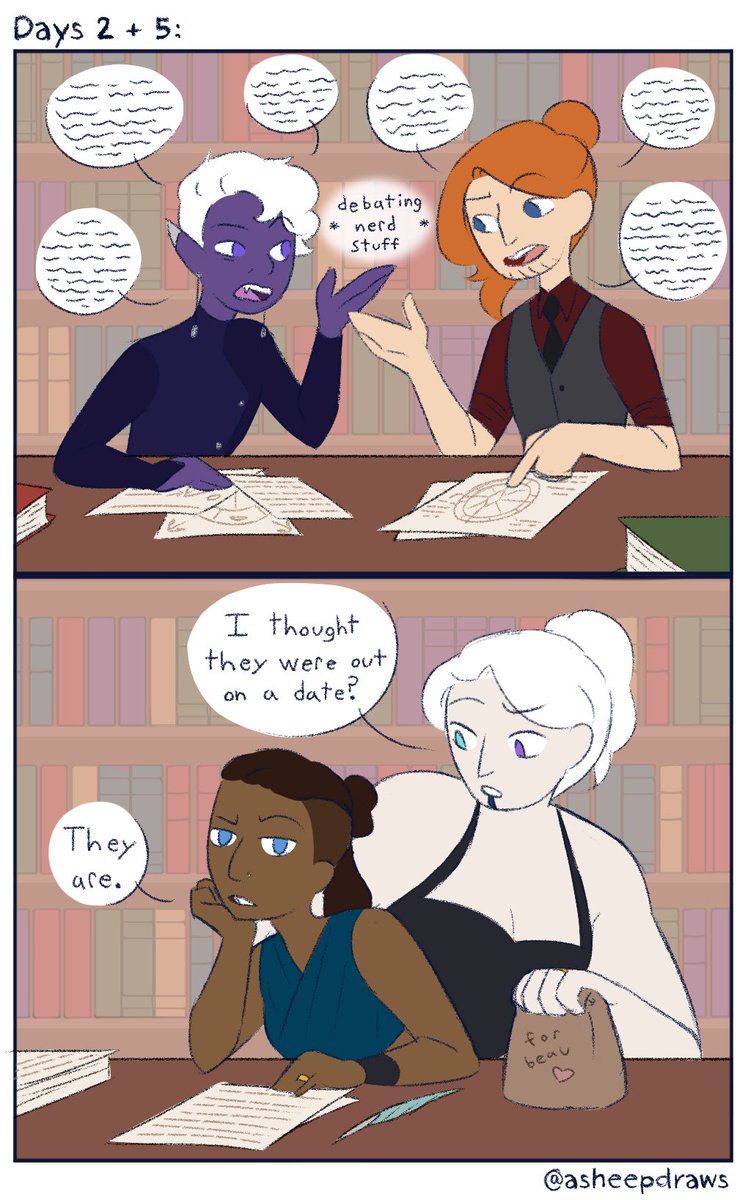 #sgtober2022 days 2+5: academic rivals and library dates 📚💖 (aka when arcane deliberation is a love language) #shadowgast #criticalrolefanart #essekthelyss