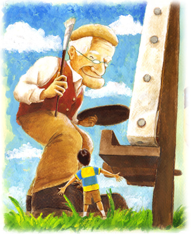 創作絵本「おじいさんの不思議な絵」より一場面 #オリジナル #イラスト #Illustration #絵本 #picturebook #アクリル絵の具 #色鉛筆 pixiv.net/artworks/94278…