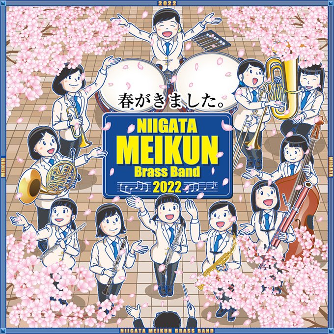 春が来ました(Spring is here)。 新潟明訓高校吹奏楽部 第27回定期演奏会2022。今年もポスターイラストを担当しました。春を届けられる素敵な演奏を期待しています! niigata-meikun.ed.jp/club/4638/ #イラスト #Illustration #吹奏楽 #新潟明訓高校 #定期演奏会 #ブラスバンド #brassband #さくら