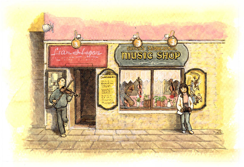 Custy's Traditional Music Shop #オリジナル #風景 #イラスト #アイルランド #Ireland #IrishTraditionalMusic #illustration #アナログ #アクリル絵の具 pixiv.net/artworks/98843…