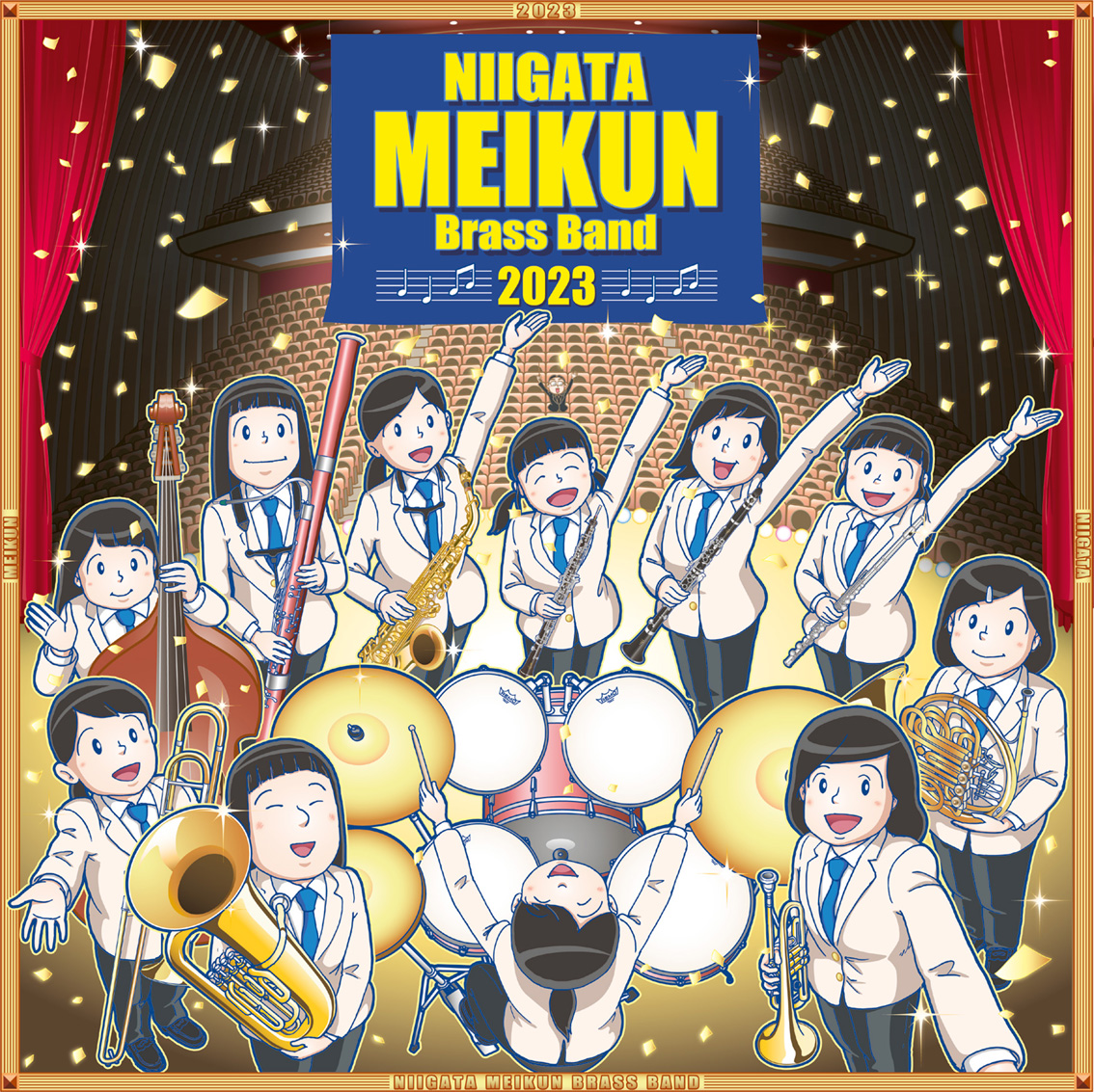 「舞台でお待ちしております」 新潟明訓高校吹奏楽部 定期演奏会2023。今年のポスターイラストです。4/1(土)13:00開場、新潟県民会館大ホール、入場無料。素敵な演奏を期待しています! niigata-meikun.ed.jp/club/5783/ #イラスト #Illustration #吹奏楽 #新潟明訓高校 #定期演奏会 #ブラスバンド #brassband