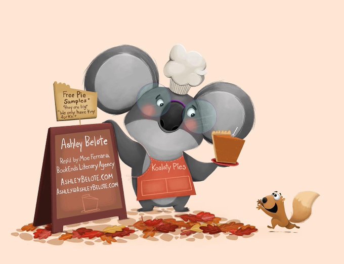 It’s #KidLitArtPostcard day! I’m a picture book illustrator who loves to draw koalas wearing hats, silly squirrels, and pie. Yum! 🎨🥧🐨 Rep’d by @inthesestones @bookendslit 🎨 ashleybelote.com #illustration #kidlit #kidlitart