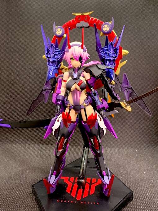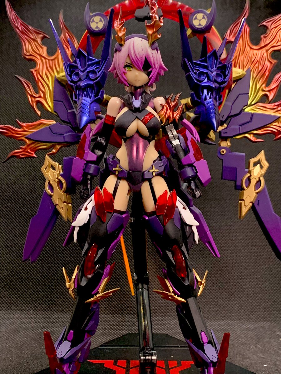 8 22 完成しました🔥 『禍威月-修羅之怨』と名付けておく。刀剣に紫赫の鬼火を纏い、怨讐の如く攻め立てるサムライ型ガールだ! ちょこっとリプで追記 #メガミデバイス #フレームアームズ・ガール #FAガール 23/01/31 13:42