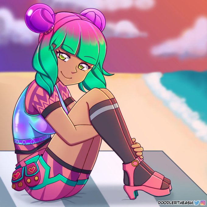 Tropical Punch Zoey 🍭 Finally finished! So proud of the pose but the background was still troublesome (*꒦ິ꒳꒦ີ) Likes and Retweets are always appreciated! Thank you! ☺️🍬 #FortniteArt