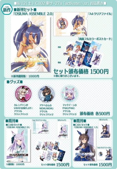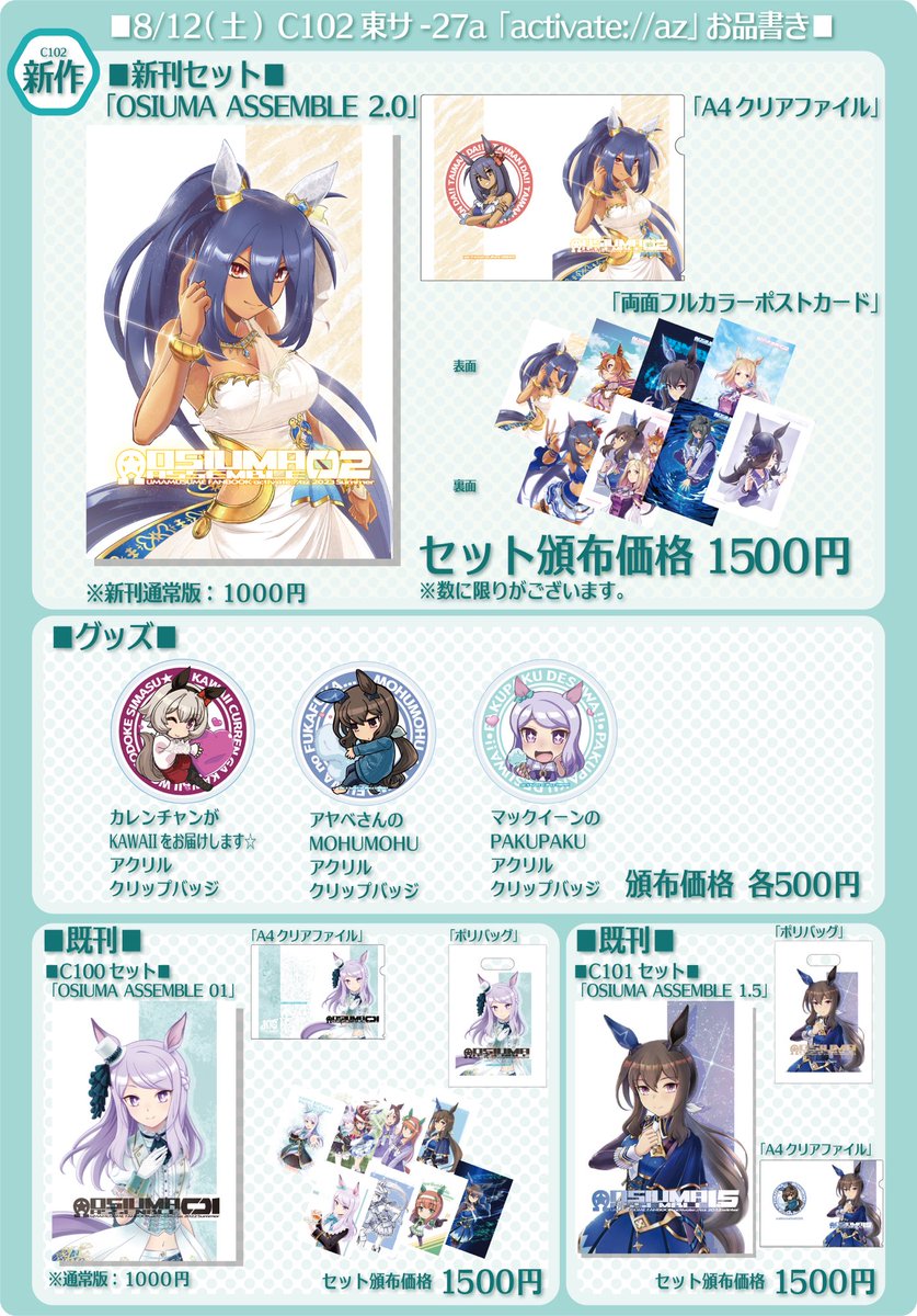 お待たせ致しました!c102東サ-27a「activate://az」お品書きです!! 開場直後はマジでお釣り無いから高額紙幣NGでお願いします・゚・(ノД`)・゚・