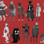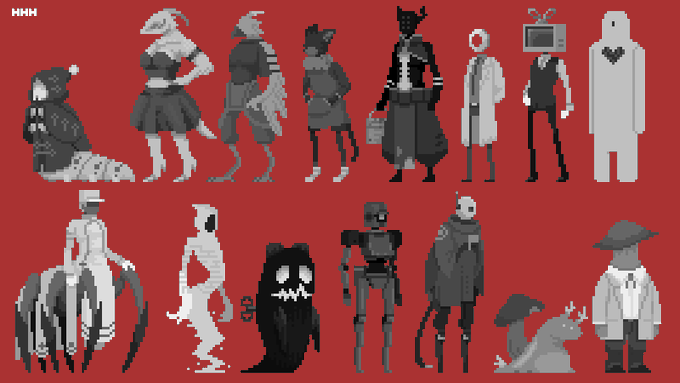 LINEスタンプ画像作成中です、の、その3。 人外やら異形頭やらの住民達。 #HellsHighHarmonizers #ヘルズハイハーモナイザーズ #ヘルハモ #indiegames #pixelarts #ドット絵