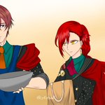 Finally done this. Mammon and Isae in yokai outfit ❤️✨ My mc dresses as Ameonna, a Japanese yokai standing in the rain. #obeyme #obeymemammon #obeymemc #obeymefanart
