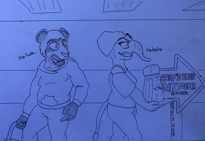 #inktober2022 was a lot more than i was expecting. dont know if ill do it next year, like when is artfight ong!! so happy I could keep up with my two main goals though: fit the prompt into the Chefs Kiss narrative and fit Inktober 2022 somewhere in the scene yippee!! Day 31: Farm