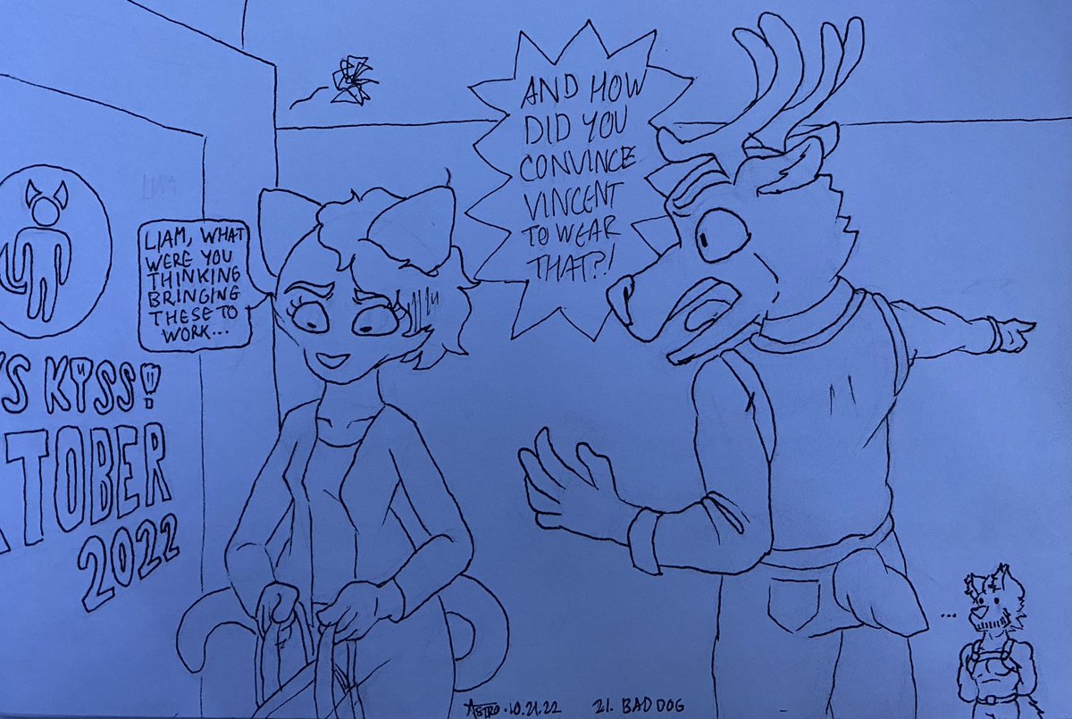 there is another version to this days #inktober2022 and no im not gonna send it just thought yall should know <3 Day 21: Bad Dog