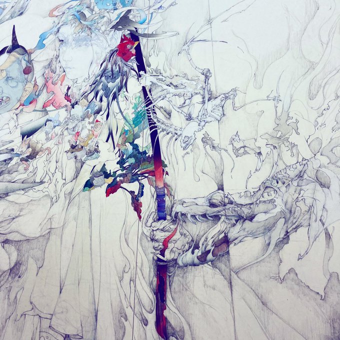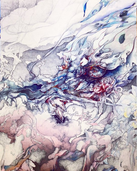 那珂川町馬頭広重美術館の個展出品作品のご紹介。開幕まで、少しずつ作品をご紹介していきたいと思います。 (画像は作品部分) 展覧会は8/26からです。 hiroshige.bato.tochigi.jp/wp-content/upl… #入江明日香 #那珂川町馬頭広重美術館