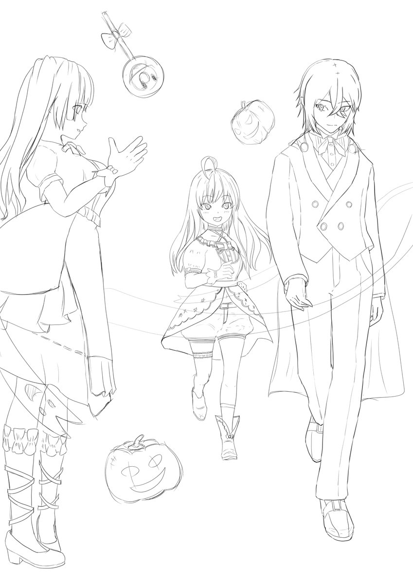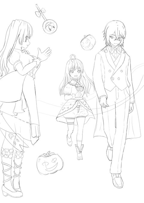 ◤進捗状況◢ テーマ:ハロウィン (10/18)3人くらい書きたい・・・⇒(10/19)2人目の下書き描いたー!!⇒(10/22)3人目+アイテムを追加~ #イラスト #線画 #練習 #オリキャラ #イラスト #顔 #Vroid