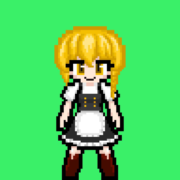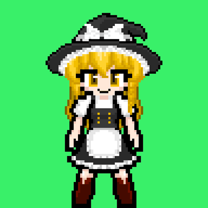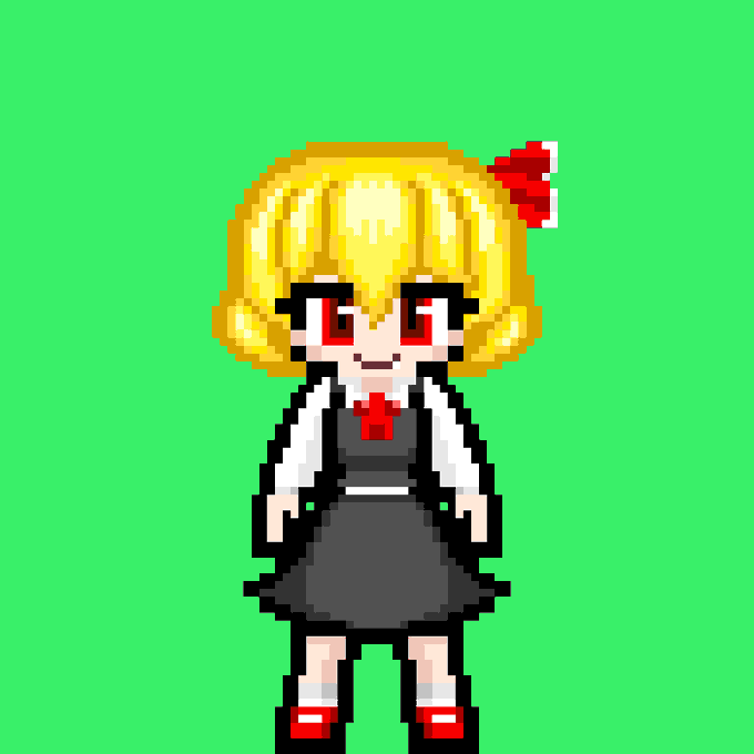 It's Rumia!! ってことでまたまた素立ちですが... 東方Projectよりルーミアです ポーズ変えようか迷ったんですけども、このあと色々と使いたいんでスダチです #ドット絵 #東方project #ルーミア