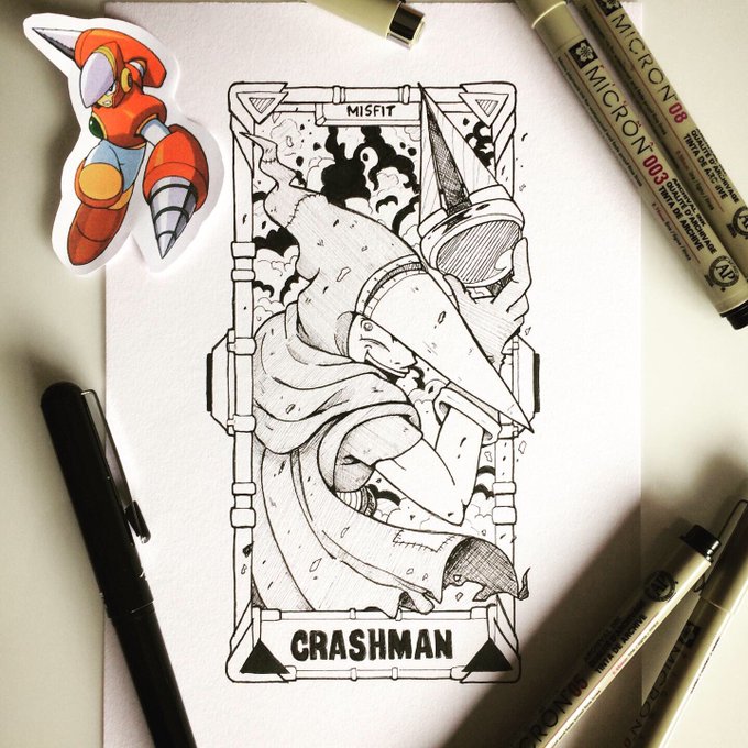 Inktober 2019 : Gijinka Mega Man ! Day 18 : Misfit Robot Master : Crash Man #inktober #inktober2019 #officiallist #megaman #rockman