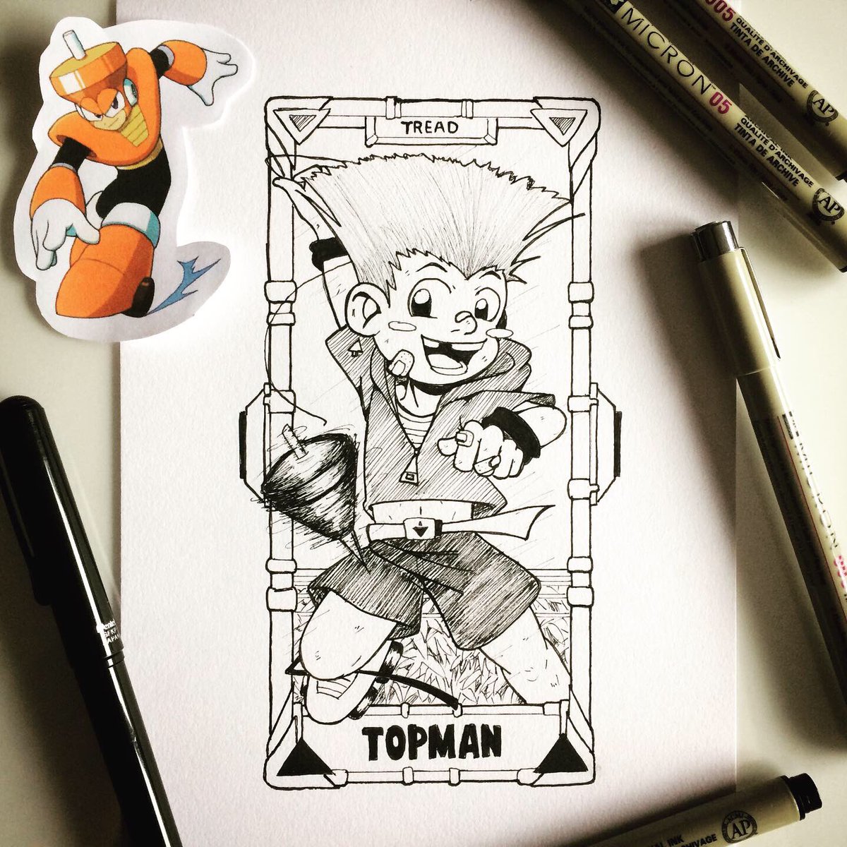 Inktober 2019 : Gijinka Mega Man ! Day 20 : Tread Robot Master : Top Man #inktober #inktober2019 #officiallist #megaman #rockman