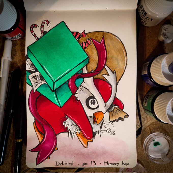 #Delibird 🎁 Memory box #Inktober / #Witchtember day 13 : Quand un #Cadoizo vous balance ses souvenirs à la gueule ! #art #artwork #ink #Pokemon #pokemonfanart #pokemonart #fanart