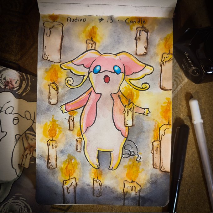 #Audino 🕯️ #Candle #Inktober / #Witchtember day 12 : Une illustration où je suis moyennement satisfaite mais comme j'ai dû déjà la refaire, j'ai pas envie d'insister. Donc voilà. #art #artwork #Pokemon #pokemonfanart #pokemonart #ink #fanart