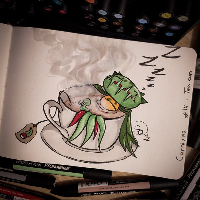 #Carnivine 🍵 Tea cup #Inktober / #Witchtember day 14 : Un bain de thé pour #Vortente ! #art #artwork #pokemon #pokemonart #pokemonfanart #fanart #markers #promarker #alcoholmarkers