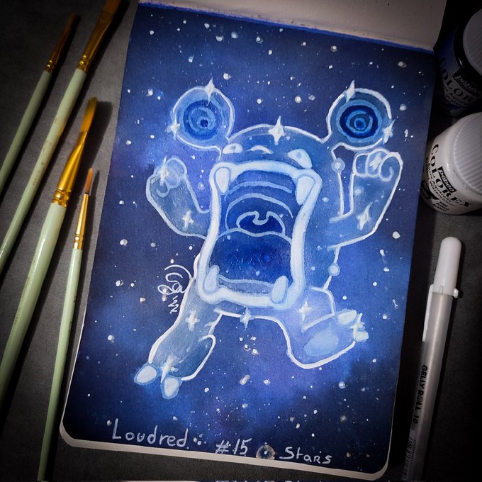 #Lourdred ✨ #Stars #Inktober / #Witchtember day 15 : Voici un #Ramboum constellation ! Il est phosphorescent mais le capteur de l'appareil photo est pas assez sensible... Je suis déçu. #art #artwork #pokemon #fanart #pokemonfan #pokemonfanart #ink