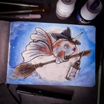 #Goldeen 🧹 #Broom #Inktober / #Witchtember day 16 : Une sorcière #Poissirène accompagné de son #Funécire lanterne sur son balais ! Euh... Kamoulox ? #art #artwork #ink #markers #promarker #pokemon #pokemonart #pokemonfanart #fanart #litwick #alcoholmarkers