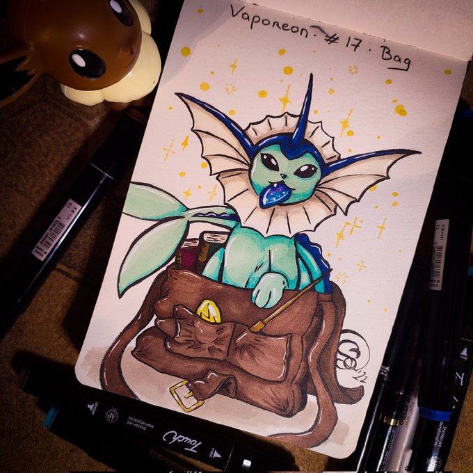#Vaporeon 🎒 #bag #Inktober / #Witchtember day 17 : Quand Evoli fouille dans le sac d'une sorcière, il peut se passer de drôle de choses ! #art #artwork #pokemon #pokemonart #pokemonfanart #fanart #aquali #markers #alcoholmarkers
