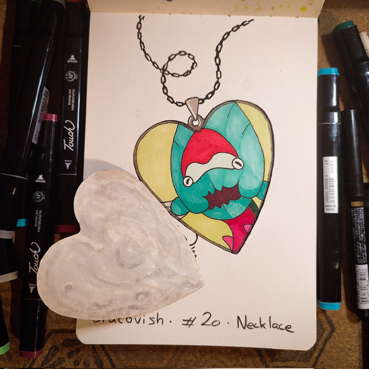 #Dracovish 🤍 #necklace #inktober / #Witchtember day 20 : Dans la série WTF, voici le #pokemon WTF ! J'en ai profité pour tester un truc. #art #artwork #markers #alcoholmarkers #pokemonart #pokemonfan #pokemonfanart #fanart La vidéo dans le tweet précédent ! ⬆️