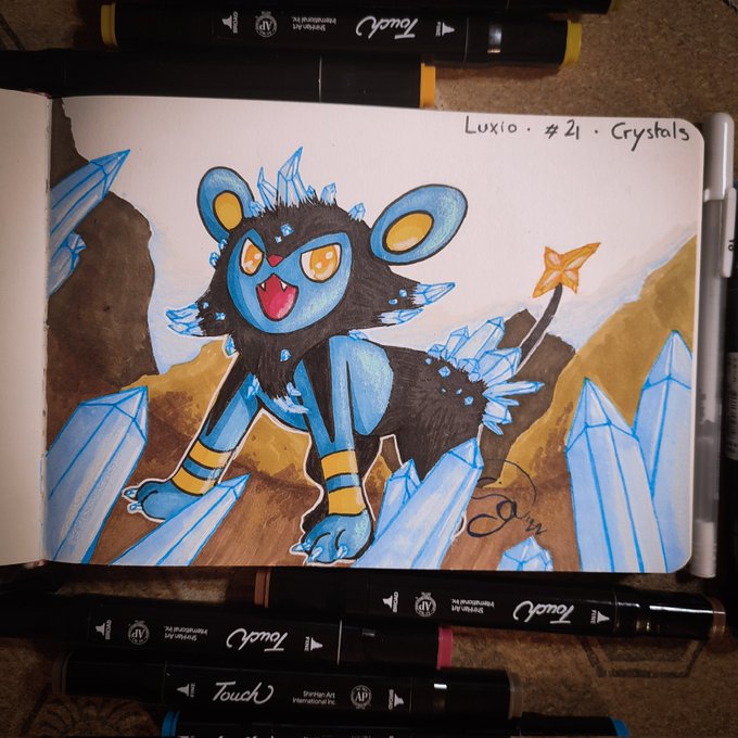 #Luxio 💎 #Crystals #Inktober / #Witchtember day 21 : Voici un Luxio de cristal ! #art #artwork #traditionalart #markers #alcoholmarkers #pokemonart #pokemonfan #fanart