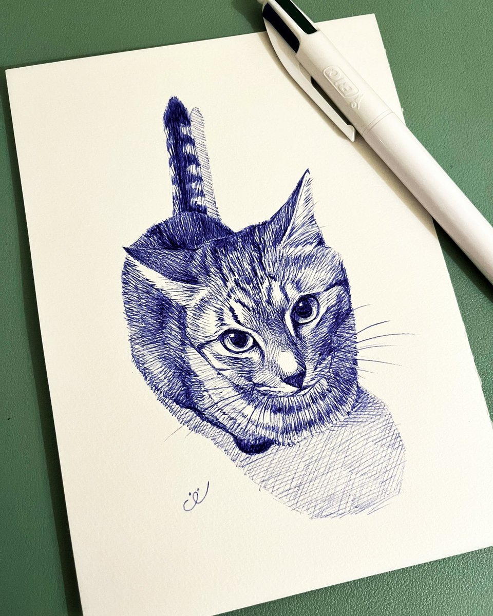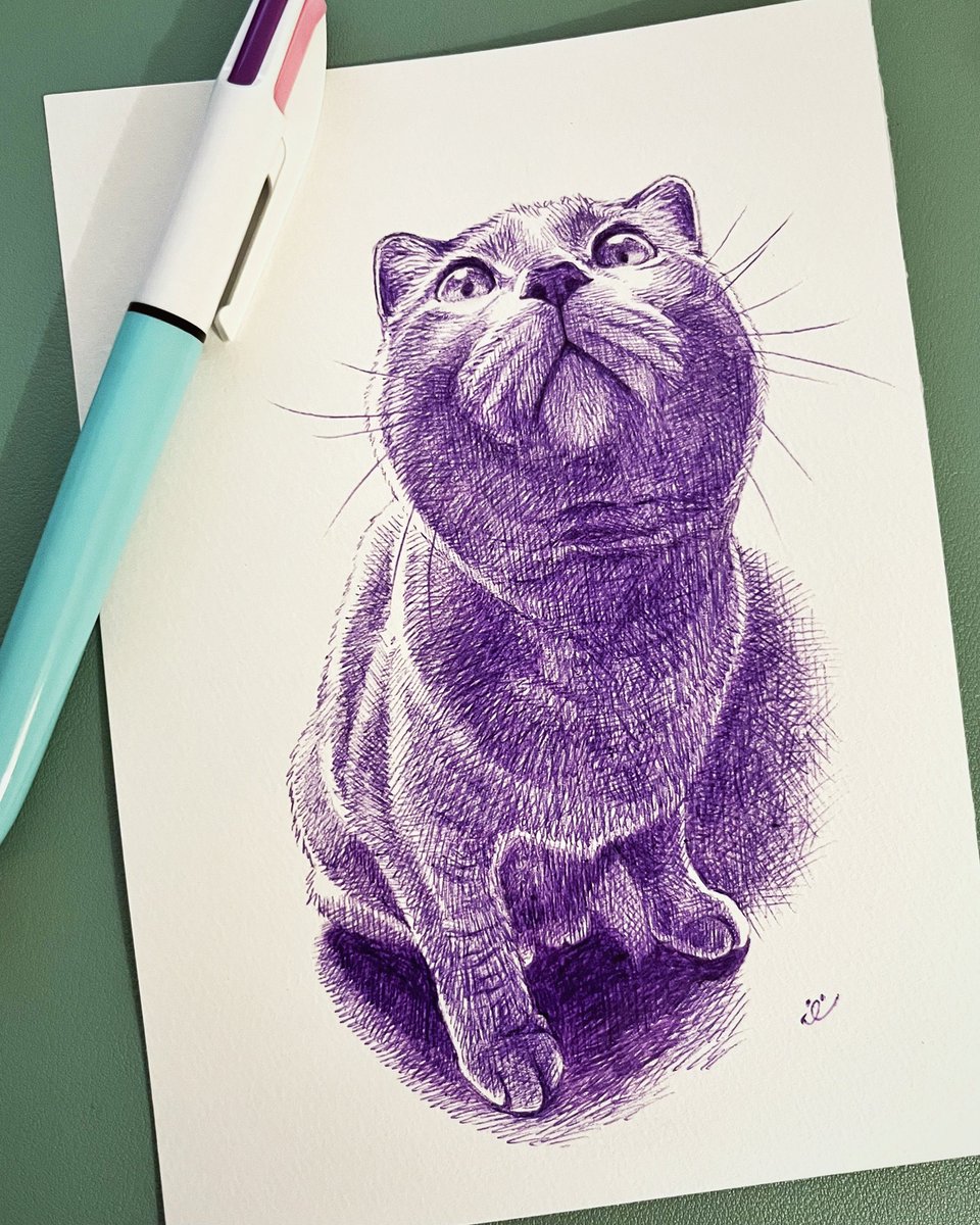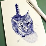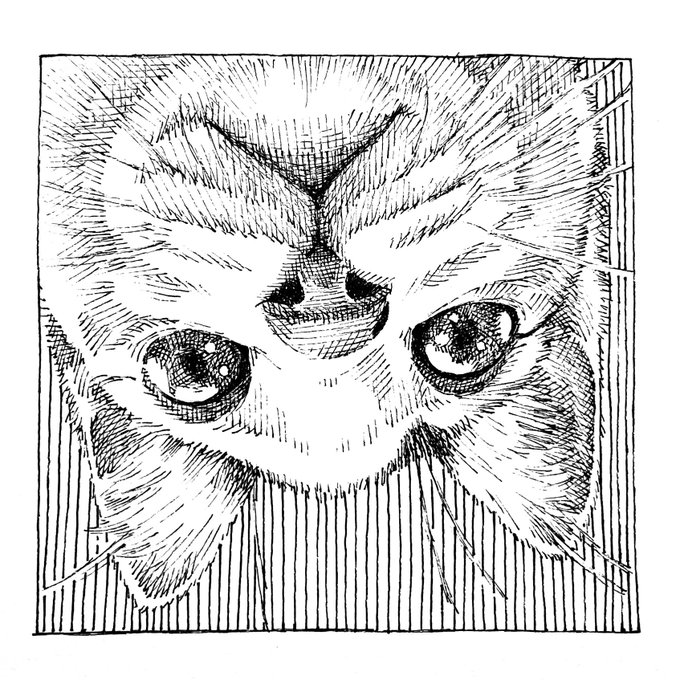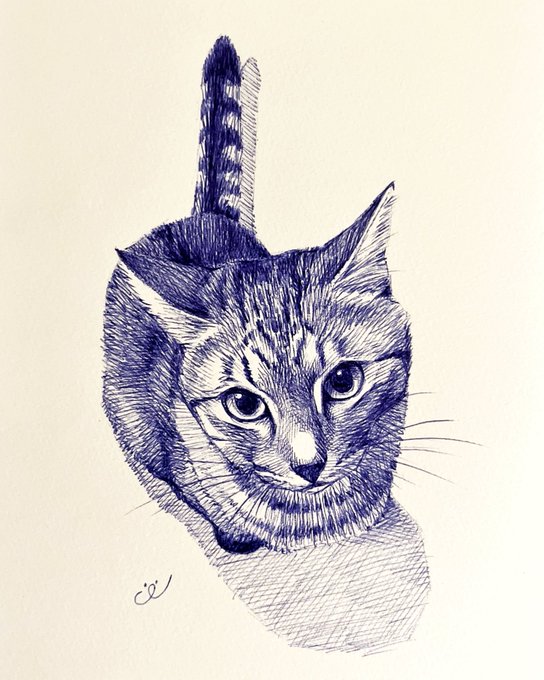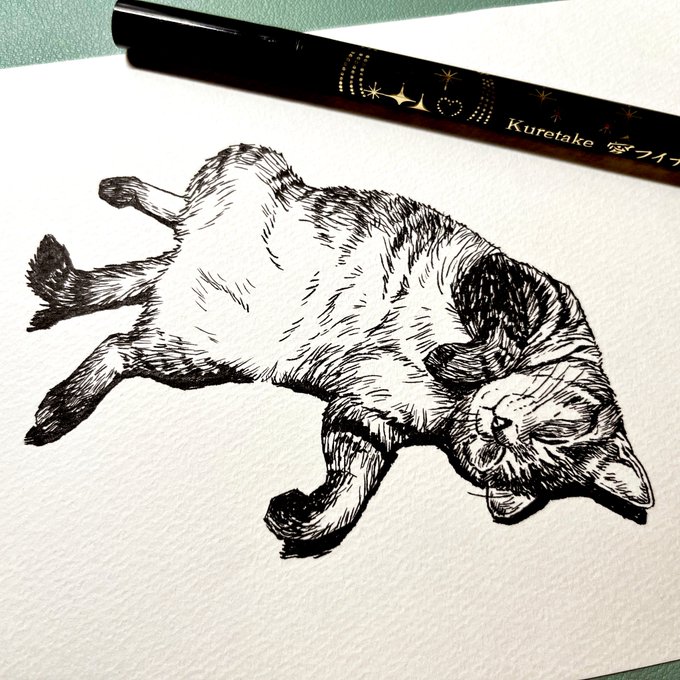 インクトーバー2日目というか2枚目 呉竹さんの愛ライナーで描いたうちの猫です( ˊωˋ ) 愛ライナー𝑳𝑶𝑽𝑬なのでカラバリ増やしてほしい〜! セピアとかブラウン系のカラー切実希望🥹🙏 #猫の絵 #ペン画 #inktober2022 #kuretake_inktober2022